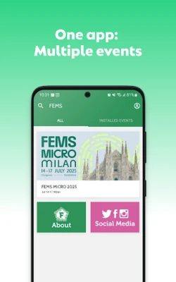 The FEMS MICRO app provides our users with access to the detailed programme underpinning our Congress & Exhibition and all relevant information about the event. It also provides up-to-date floorplans of the venue and Exhibition hall, as well as in-event connectivity through links to the FEMS Journals, our social platforms, information from our Partners, and a chat function for attendees. The app also allows FEMS to communicate with attendees, providing updates and messaging related to the FEMS MICRO Milan 2025: Congress & Exhibition.