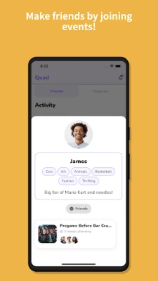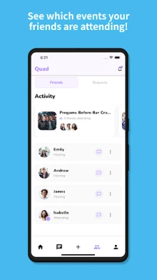 Quad is the social platform that brings people together through events and connections. Whether you are a college student looking to connect with your campus community or anyone wanting to discover local events and make new friends, Quad has something for everyone.
